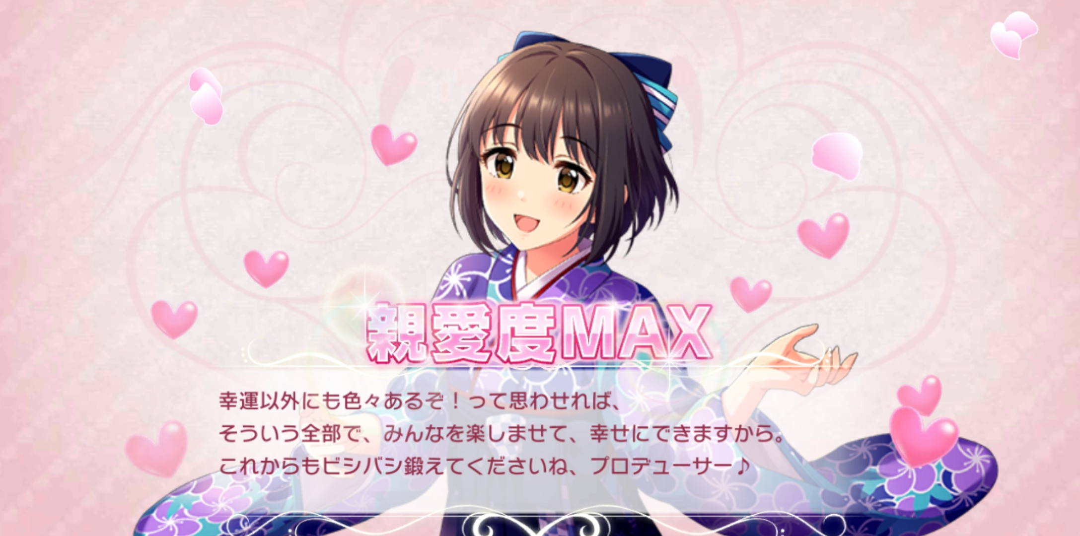- 행운 이외에도 여러가지 있구나! 라고 생각한다면, 그 전부로, 모두를 즐겁게 하고, 행복하게 할 수 있으니까. 앞으로도 열심히 단련시켜주세요, 프로듀서♪